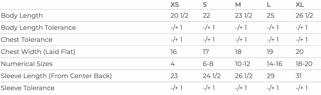 2T, 3T, 4T, 5/6T, XS, Small, Medium, Large, XL